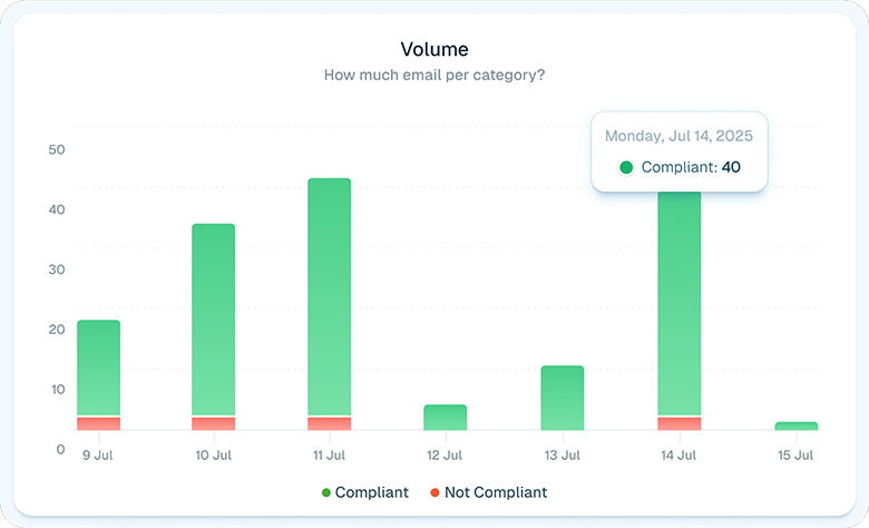 Libraesva LetsDMARC makes it incredibly easy to set up DMARC to protect your brand, with instant insights into your email flows so you can take control of your domain.
