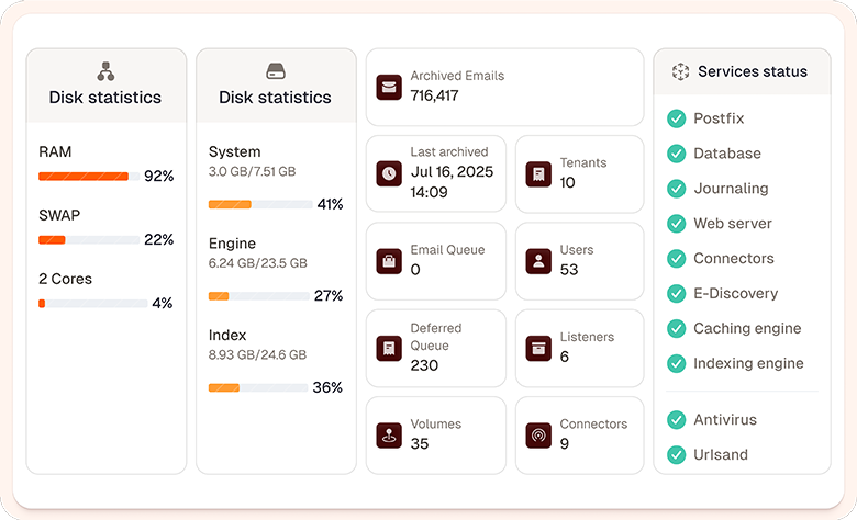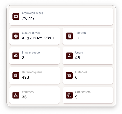 Custom retention rules, blazing fast e-discovery, and privacy-first architecture keep your business fully compliant and in control without slowing things down.